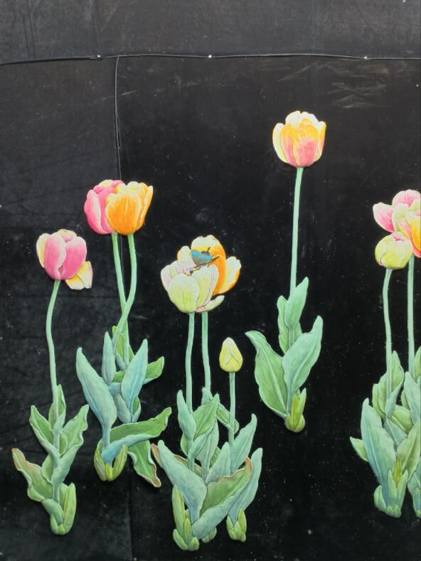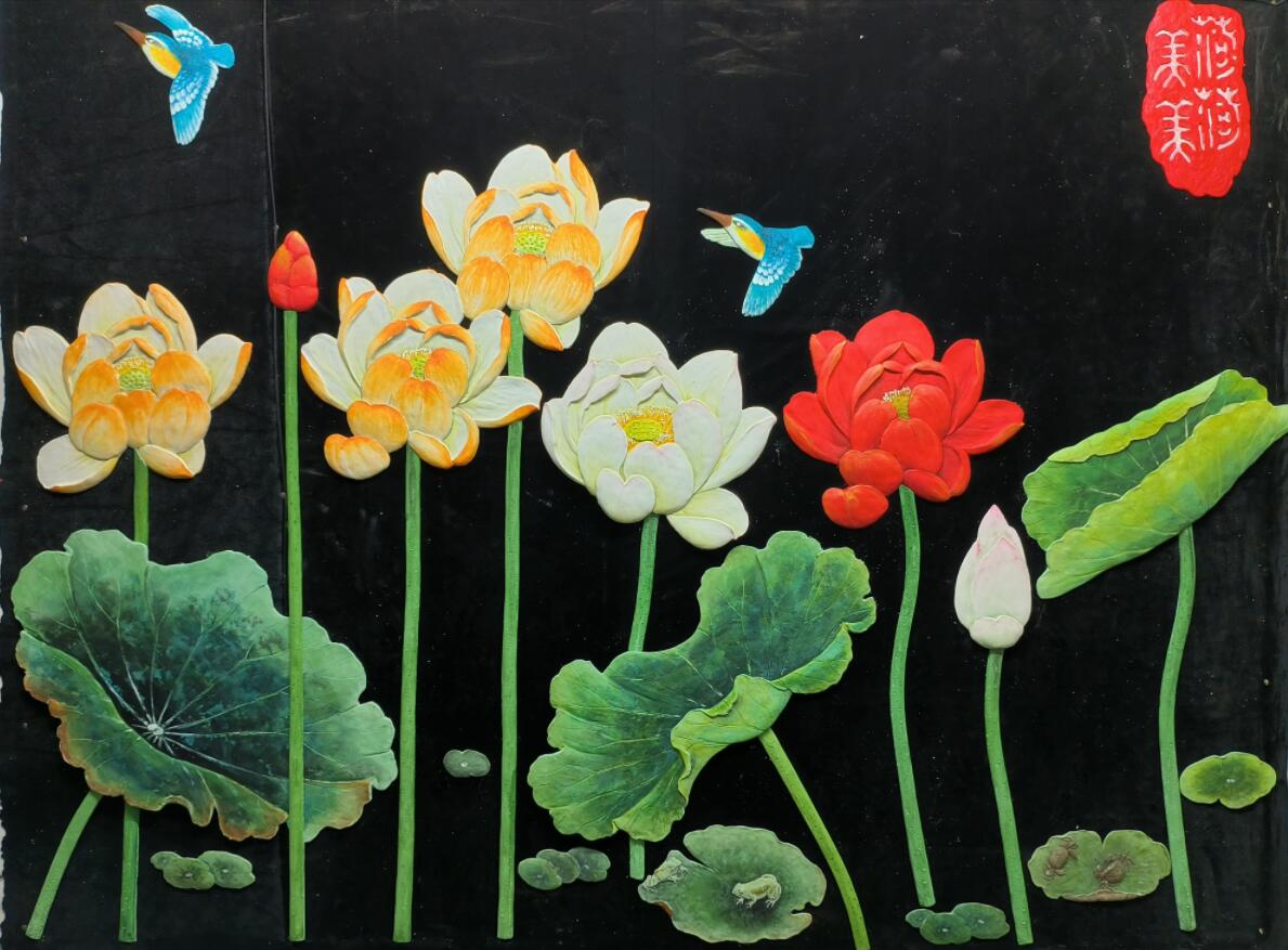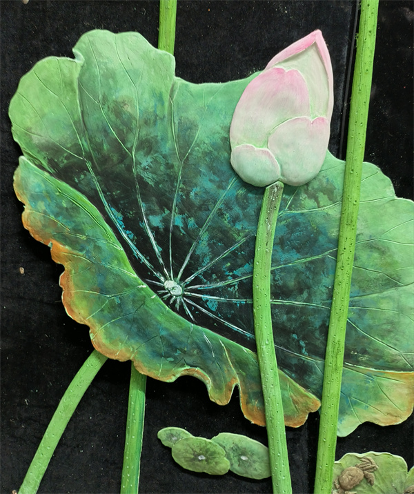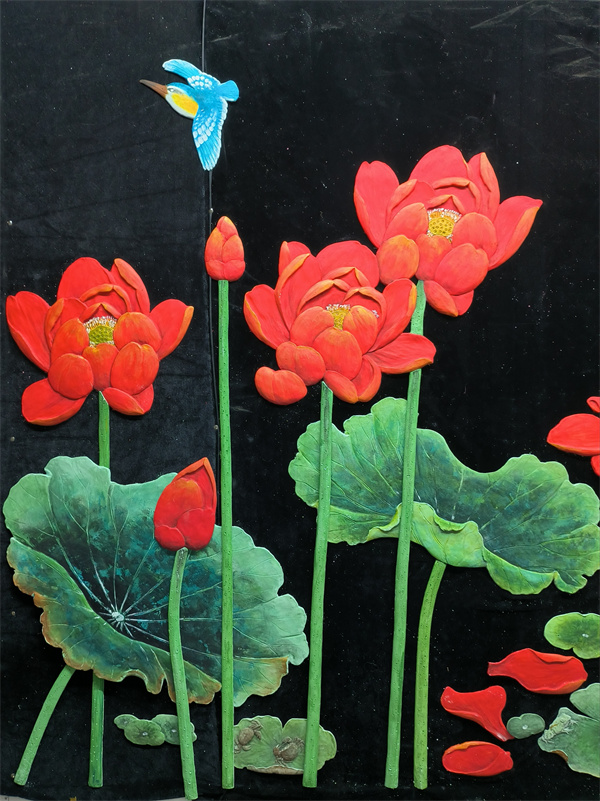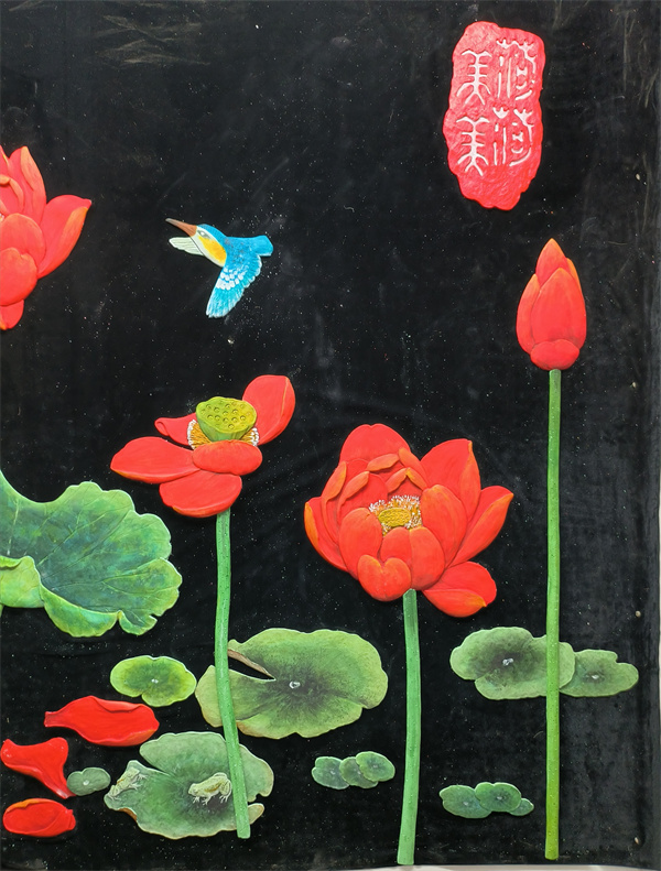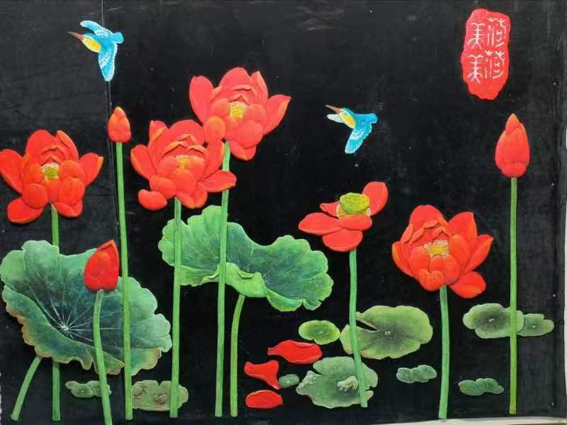 艺术涂料浮雕雕刻大菏花立体图粘附画